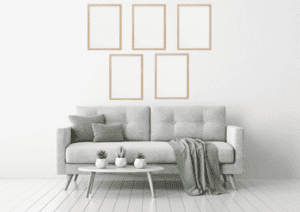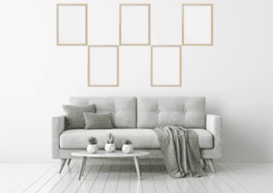 Com 5 quadros, as possibilidades de pendurar parecem quase ilimitadas. Desde pendurar em grelha, pendurar nas extremidades ou pendurar em Petersburgo, parece haver muitas opções diferentes de pendurar. Tem alguma dica para me dar sobre como pendurar as minhas molduras sem furar e sem fazer buracos na parede?