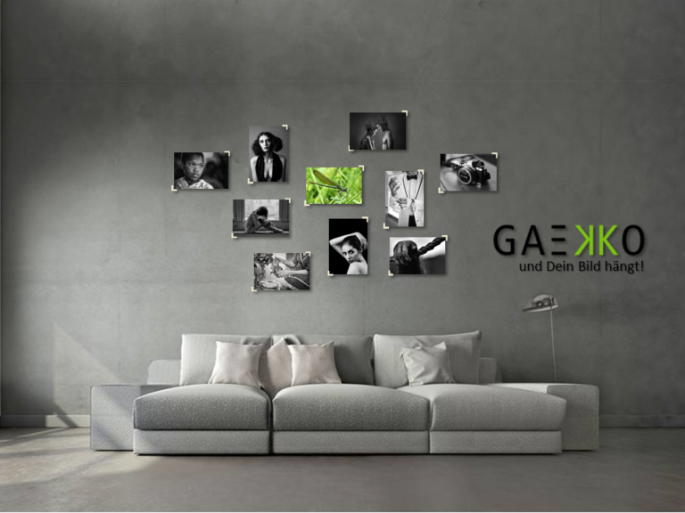 A nossa dica: Com os sistemas de suspensão auto-adesivos da GAEKKO, pode facilmente anexar as suas fotografias e postais em qualquer sala e em qualquer superfície. Por exemplo, em azulejos, papel de parede, gesso ou tijolo – os sistemas de suspensão GAEKKO são uma alternativa descomplicada às molduras, cordas fotográficas, arame fotográfico ou cortinas fotográficas.