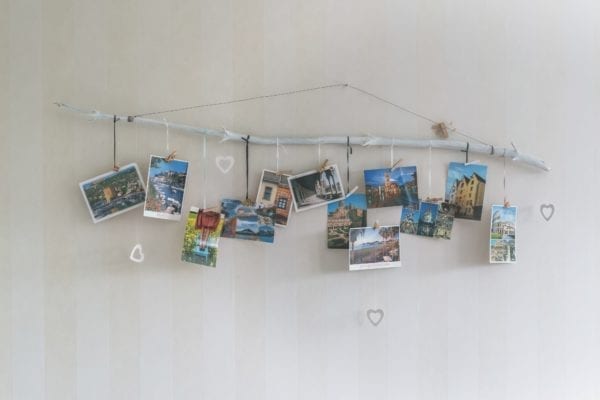 Há muitas ideias diferentes para pendurar fotografias e postais na parede. A opção criativa para qualquer divisão: Uma forma ligeiramente diferente de pendurar a sua foto favorita sem uma moldura é com a ajuda de um ramo.